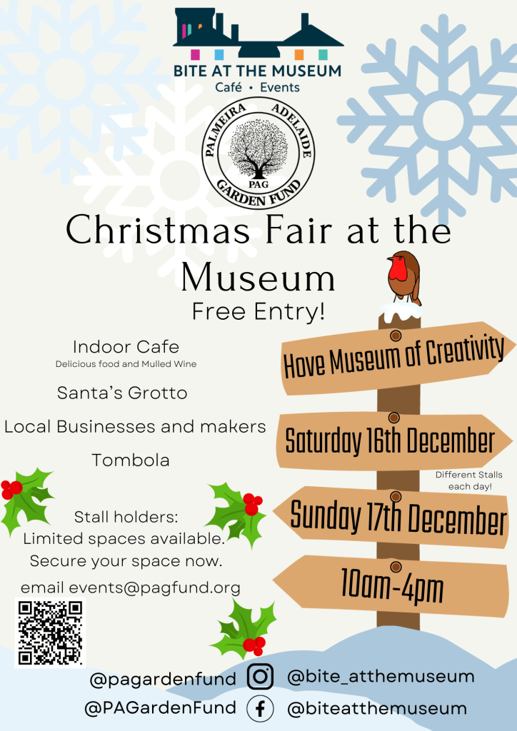 Bite & Palmeira & Adelaide Garden Fund Christmas Fair in the grounds of Hove Museum on 16th and 17th December. There will be a number of community and craft stalls, with opportunities to buy those last minute gifts from local makers, Santa’s Grotto for the children and the attractions of yummy cakes in the cafe!