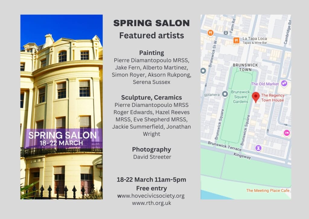 Don’t miss the forthcoming Spring Salon at The Regency Town House in Brunswick Square, presented by Hove Civic Society from Wednesday 18 – Sunday 22 March, 11 am – 5 pm, with free entry.